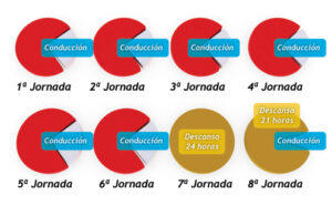 El tiempo máximo de conducción diario no puede exceder de 9 horas, salvo dos veces a la semana que puede llegar a las 10 horas.